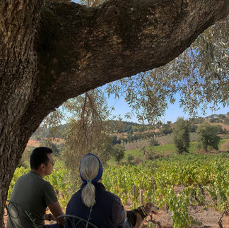 Roberto explains to me that Mandrolisai Doc is made up of three different vines: at least 35% Bovale which here is Muristeddu, Cannonau and Monica; the leaves of Muristeddu are easily recognizable because they are hairy. It was a very dry season this year and the harvest will take place earlier than expected. We sit in the shade of a large olive tree on the edge of the ancient vineyard: "It has been grafted and produces three different types of olives" Antonio tells me, his gaze gets lost between the rows, it's nice to be here.
